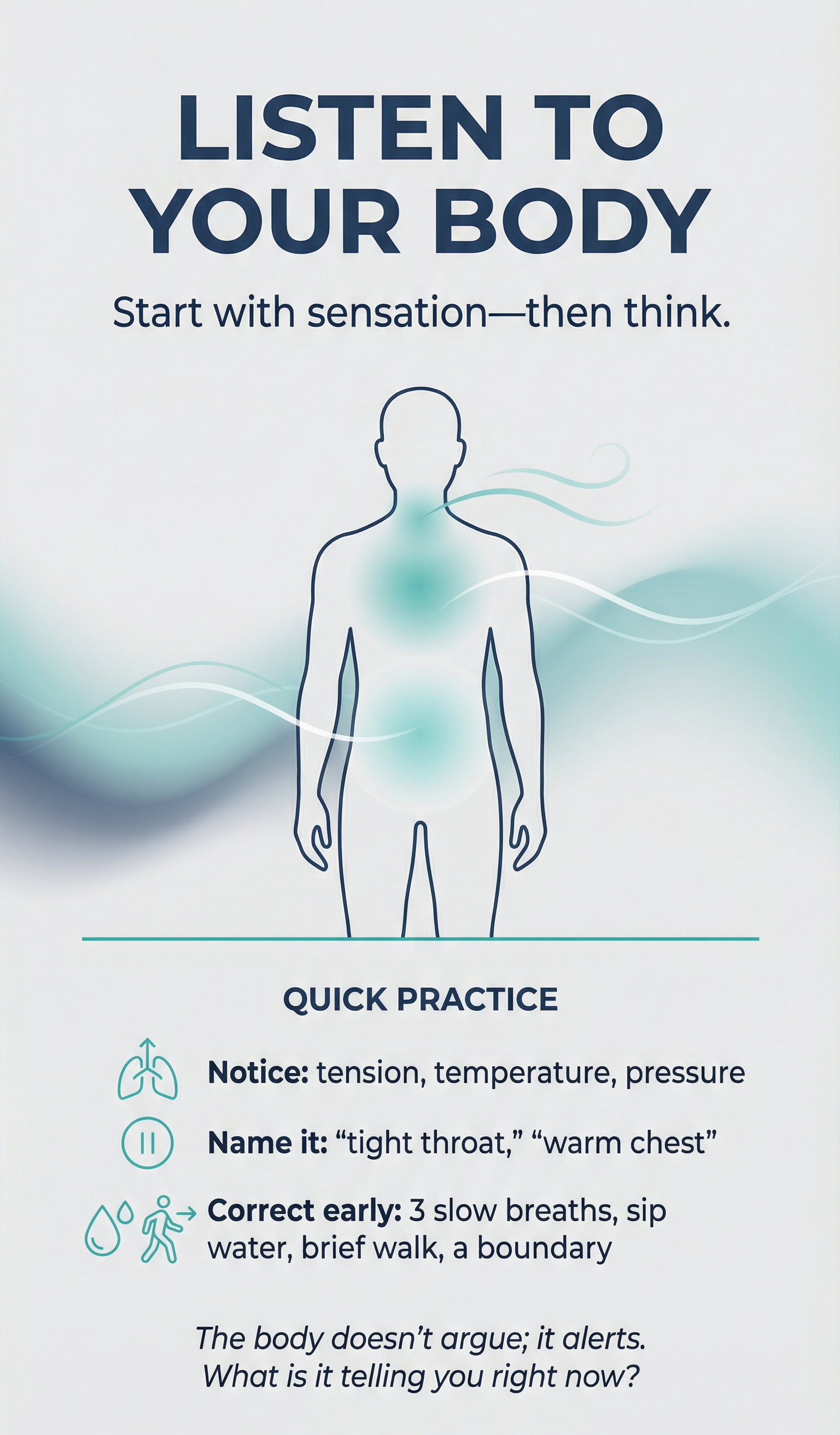 Start with sensation, then add interpretation—your body’s signals are the simplest path to clarity and correction.
